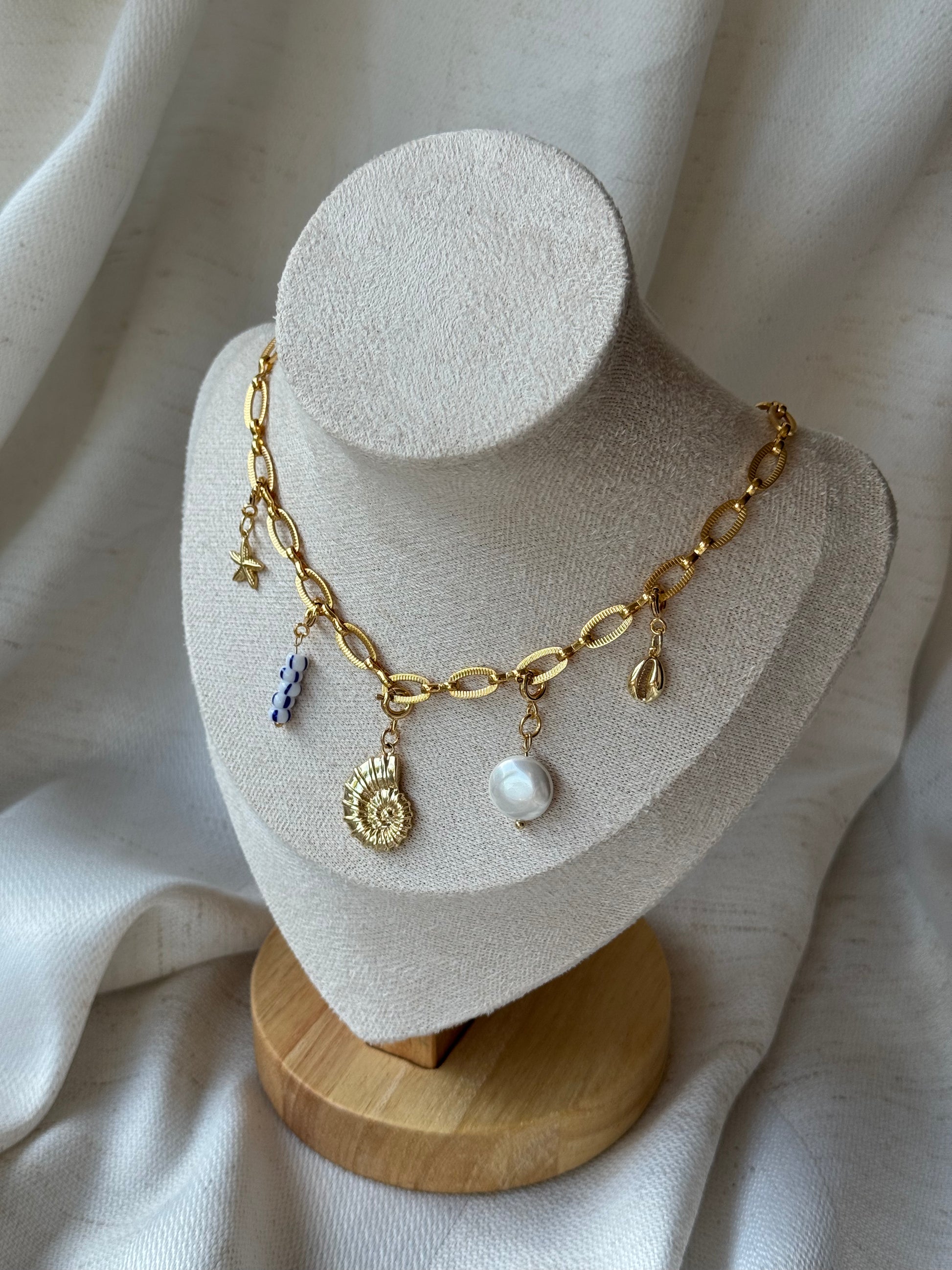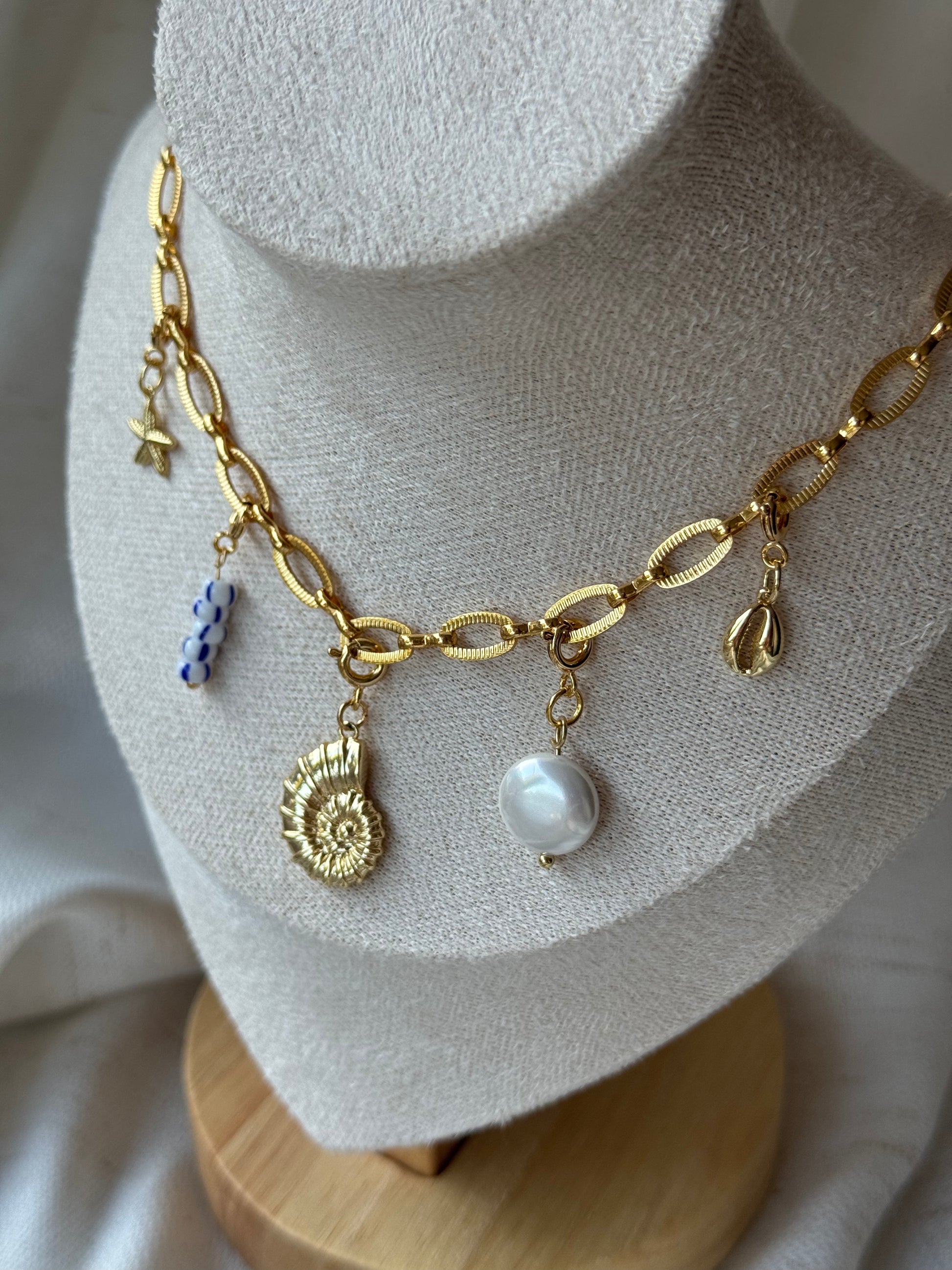 Eine vielseitige Charmkette, die dir Flexibilität und Eleganz vereint. Die vergoldete Oberfläche sorgt für einen luxuriösen Look, während die kleinen Charms sich individuell abnehmen lassen, sodass du jeden Tag eine neue Kette kreieren kannst!