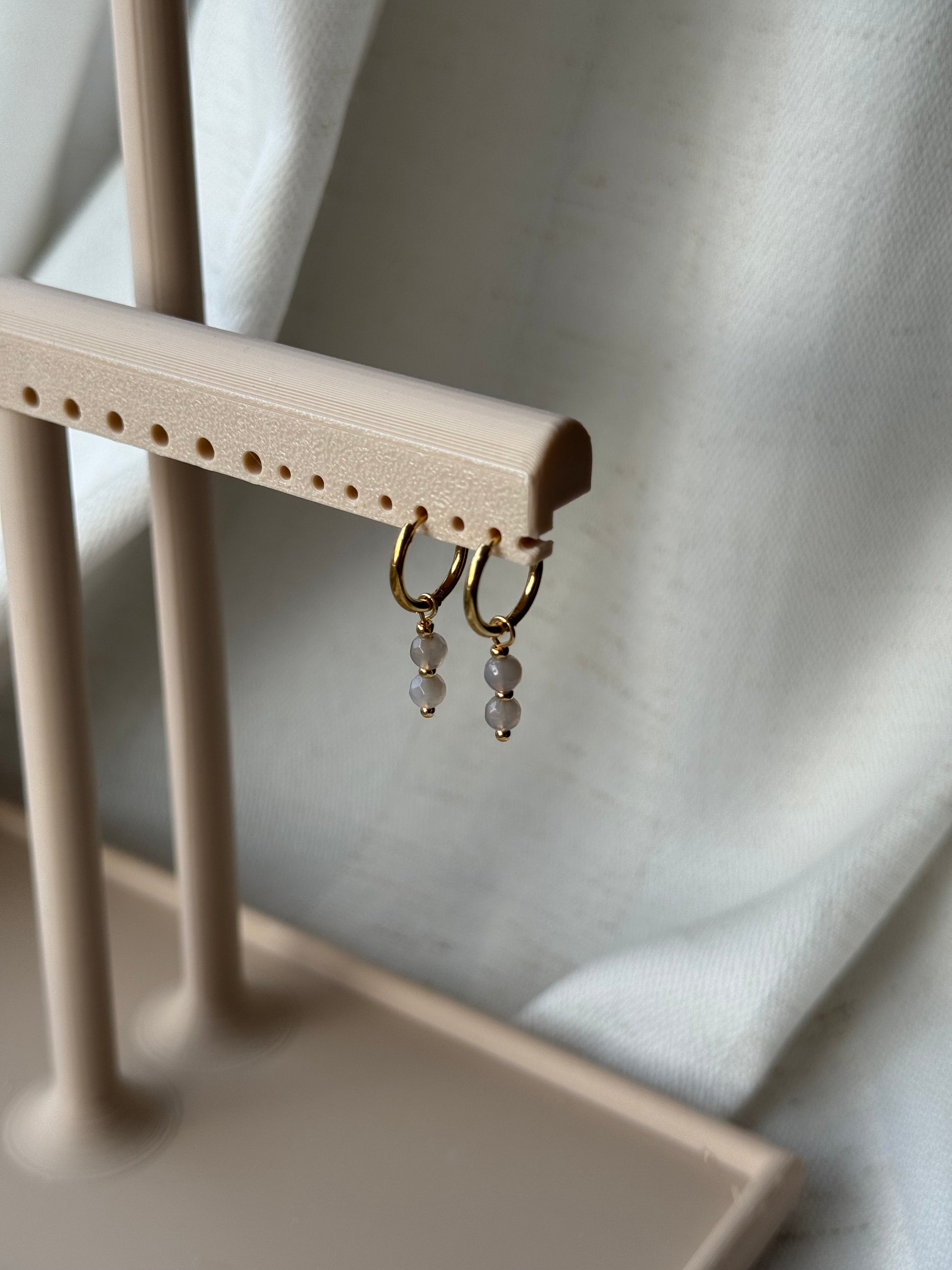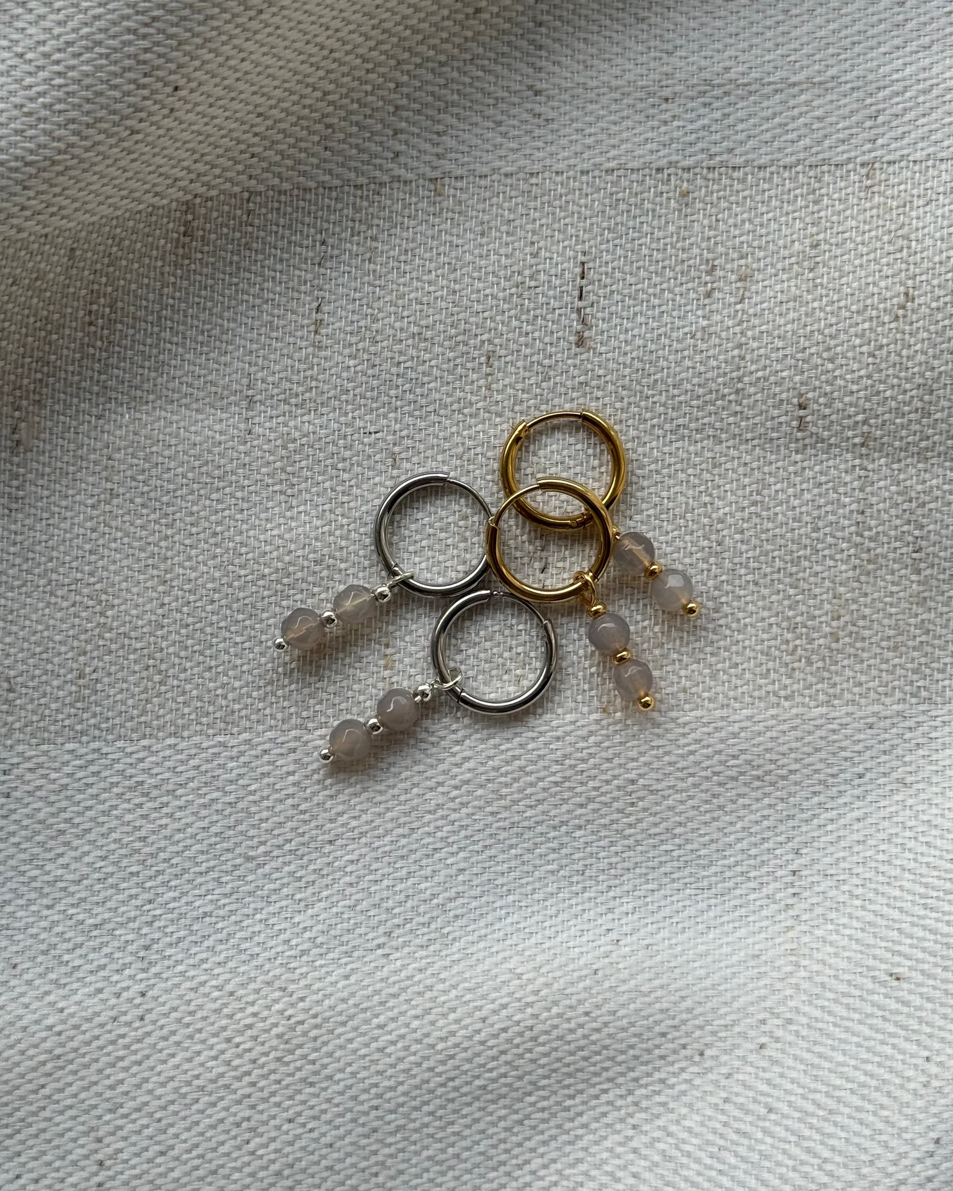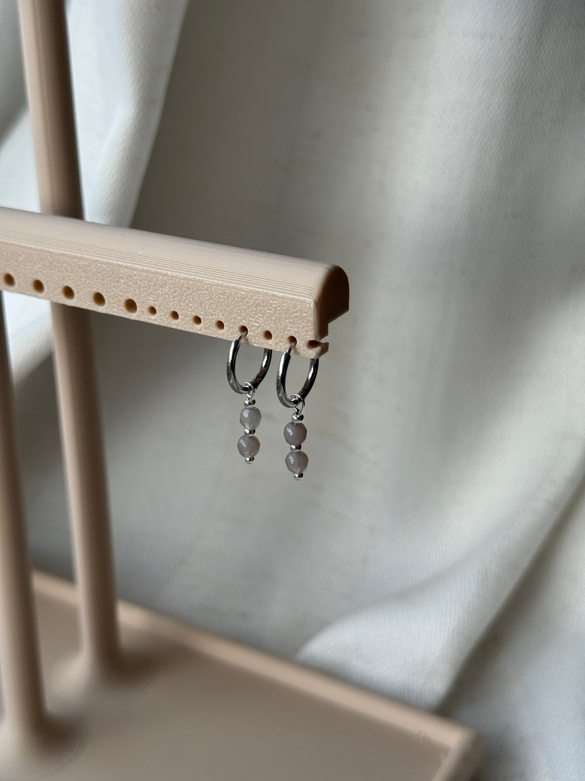 Diese minimalistischen Creolen überzeugen durch ihre klare Formsprache und eine ruhige, elegante Ausstrahlung. Der feine Anhänger aus echtem grauem Achat wird durch eine kleine Metallperle in Gold oder Silber stilvoll ergänzt und verleiht dem Design eine dezente Tiefe. Trotz ihrer Zurückhaltung wirken die Ohrringe besonders edel und lassen sich vielseitig kombinieren – perfekt für alle, die minimalistischen Schmuck mit natürlichen Materialien lieben.