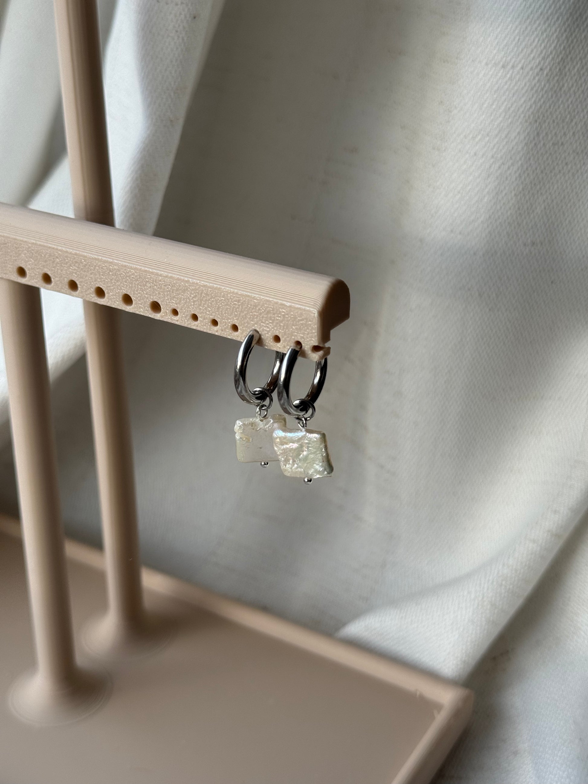 Eine hochwertige, angenehm leichte Creole mit flexiblen Styling-Möglichkeiten. Ohne Anhänger wirkt sie schlicht und modern, mit der rechteckigen Süßwasserperle erhält sie eine elegante, besondere Note. Jede Perle ist ein Naturprodukt und somit ein kleines Unikat – Form und Oberfläche können leicht variieren und unterstreichen den individuellen Charakter dieses Schmuckstücks.