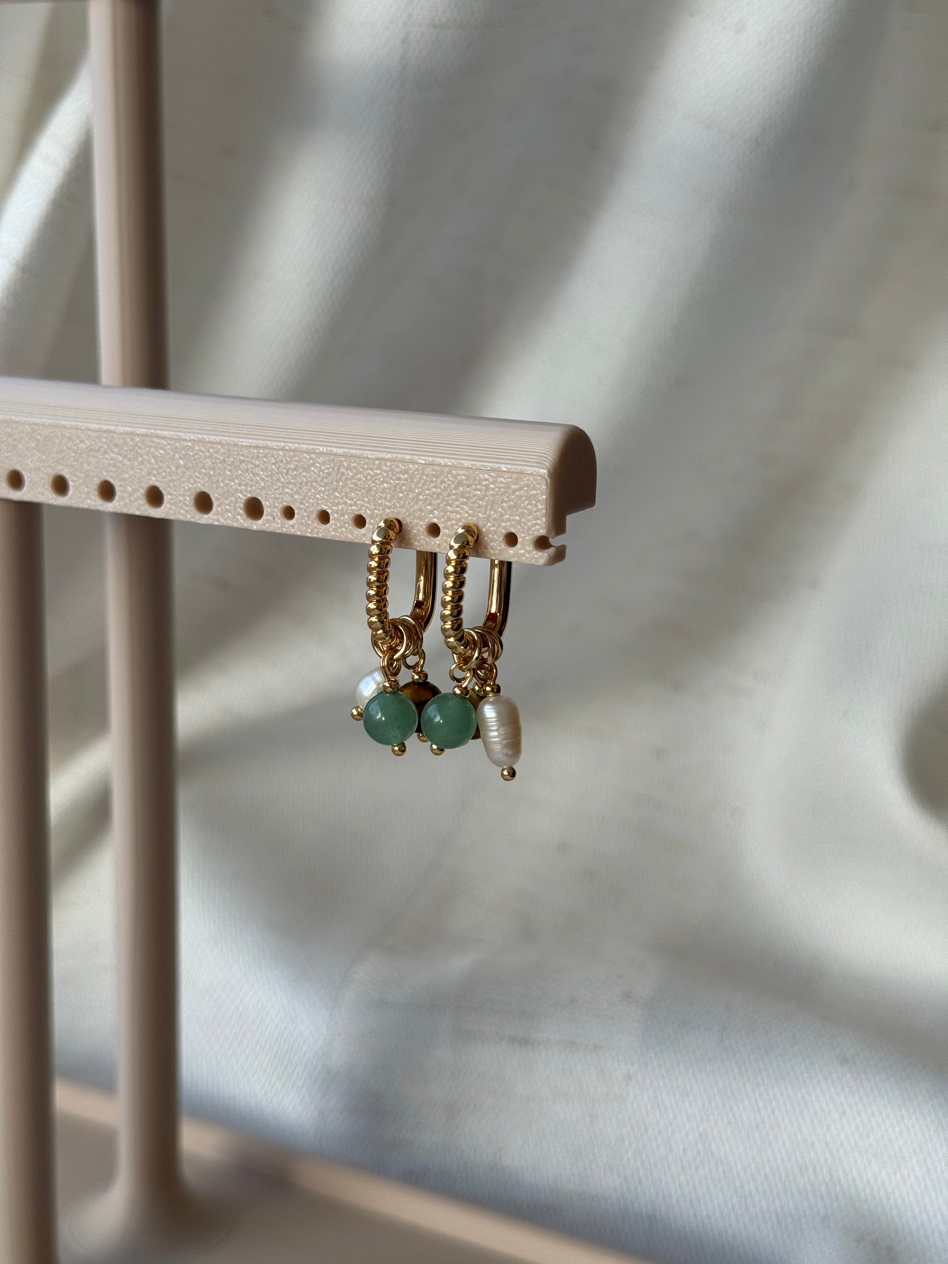 Diese Ohrringe sind leicht, elegant und vielseitig kombinierbar. Die Süßwasserperlen verleihen ihnen einen klassischen, femininen Charakter, während die Edelsteine Tigerauge und Aventurin moderne Akzente setzen. Ob für den Alltag oder besondere Anlässe , sie sind die perfekte Wahl, wenn du ein Schmuckstück suchst, das zeitlos bleibt und doch individuell wirkt.